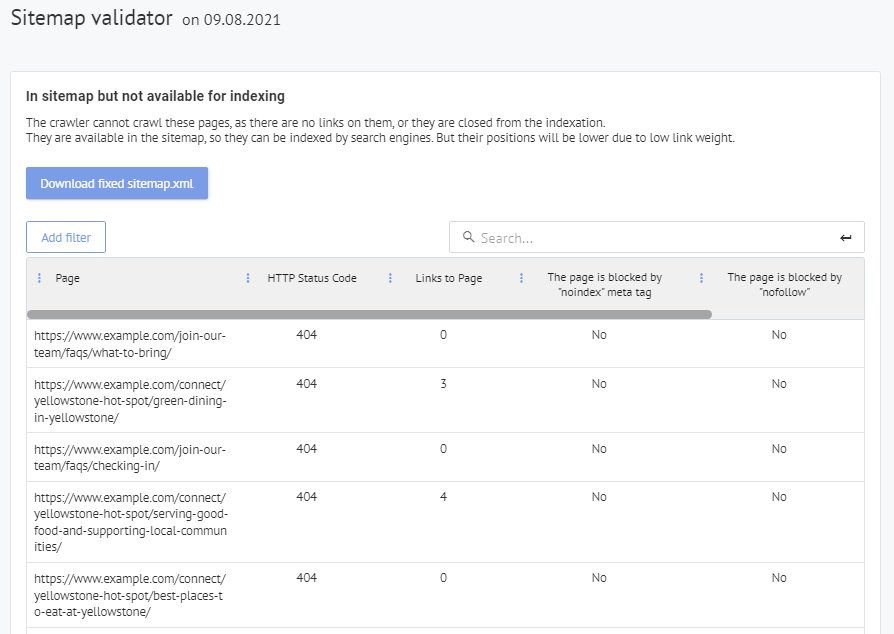 Sonra sitenizi tarayarak geçerli “resmi” URL listesini çıkarın. “Web sitesi tarayıcı aracı” araması yaparak uygun araçları bulabilirsiniz.