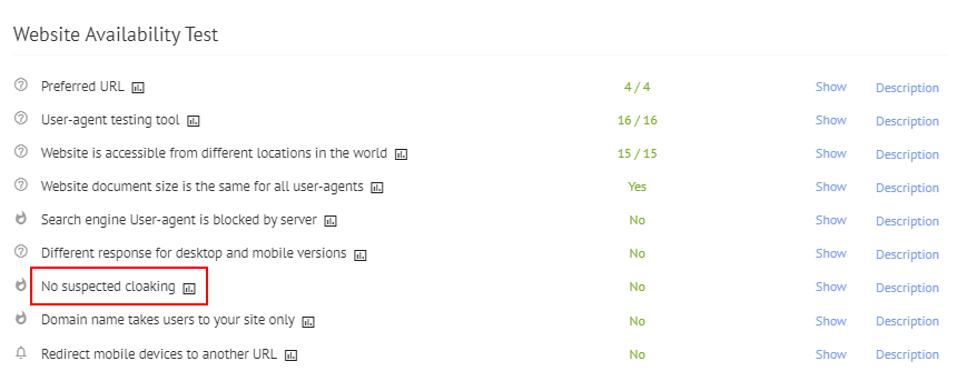Labrika’nın web sitesi erişilebilirlik testi teknik site denetiminde bulunur. Sitenizde cloaking şüphesi varsa bu denetimde uyarı görünür.